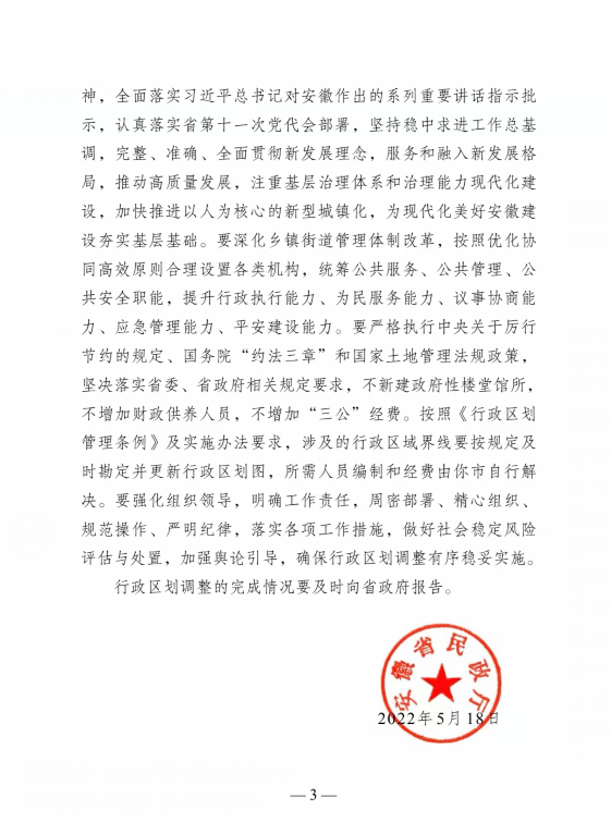经安徽省人民政府同意,5月18日,安徽省民政厅同意安庆市调整望江县宿松县部分行政区划。其中,宿松县破凉镇更名华亭镇已获安徽省民政厅批准。