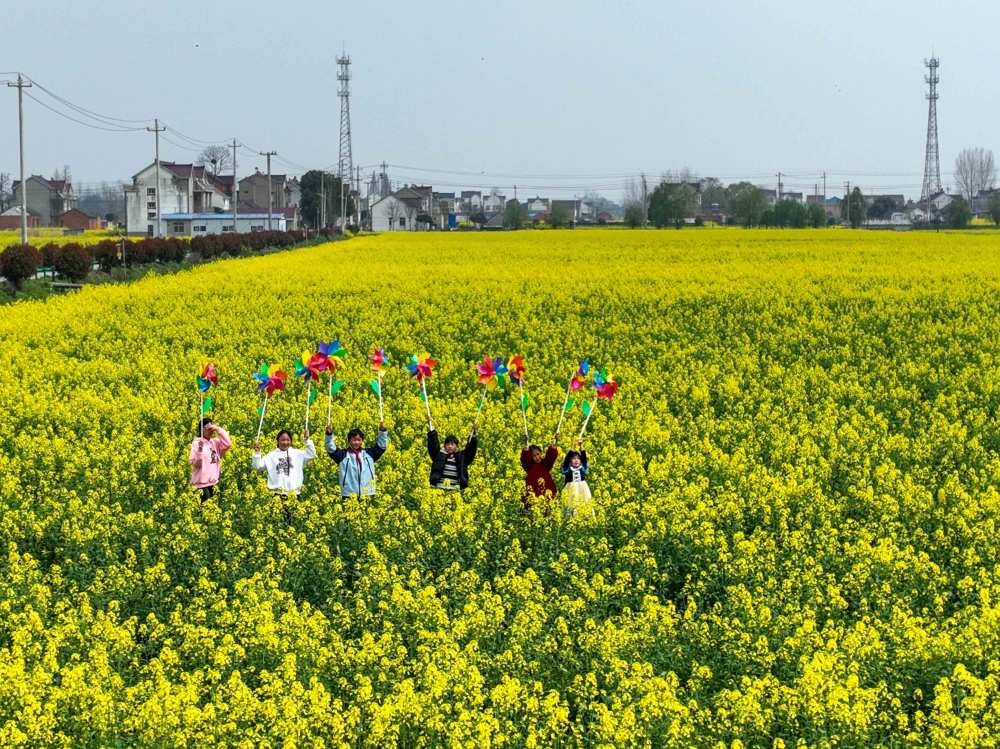 人间芳菲月,春暖百花开。在当涂县护河镇青山村,连片的油菜花开正盛,与远处的村庄交相辉映,一幅春意盎然的和美乡村画卷在眼前徐徐展开。春风拂过,油菜花海泛起金灿灿的波浪,花香扑鼻。 被花海吸引而来的游客,漫步在田野间,徜徉在花海中,享受着田园风光。 “在朋友圈看见护河的油菜花开了,趁着天气晴朗,便立马约上朋友来这里赏花踏春,打卡留念。”游客周洁开心地说。